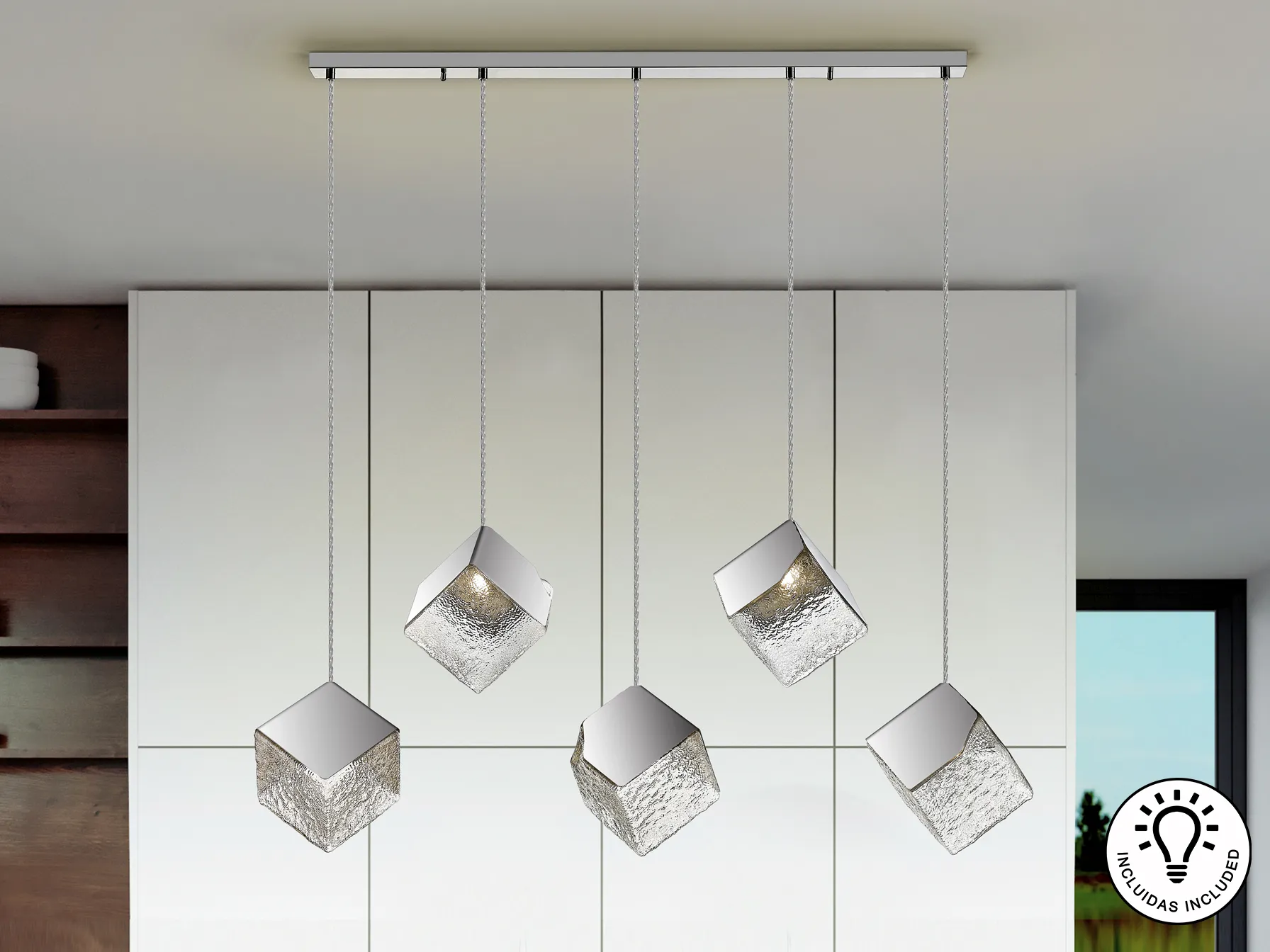 Лампата ·ПРИСИЛА· е идеално осветително тяло за всяко съвременно пространство. С нейните 5 светлини, тя осигурява ярко и ефективно осветление.