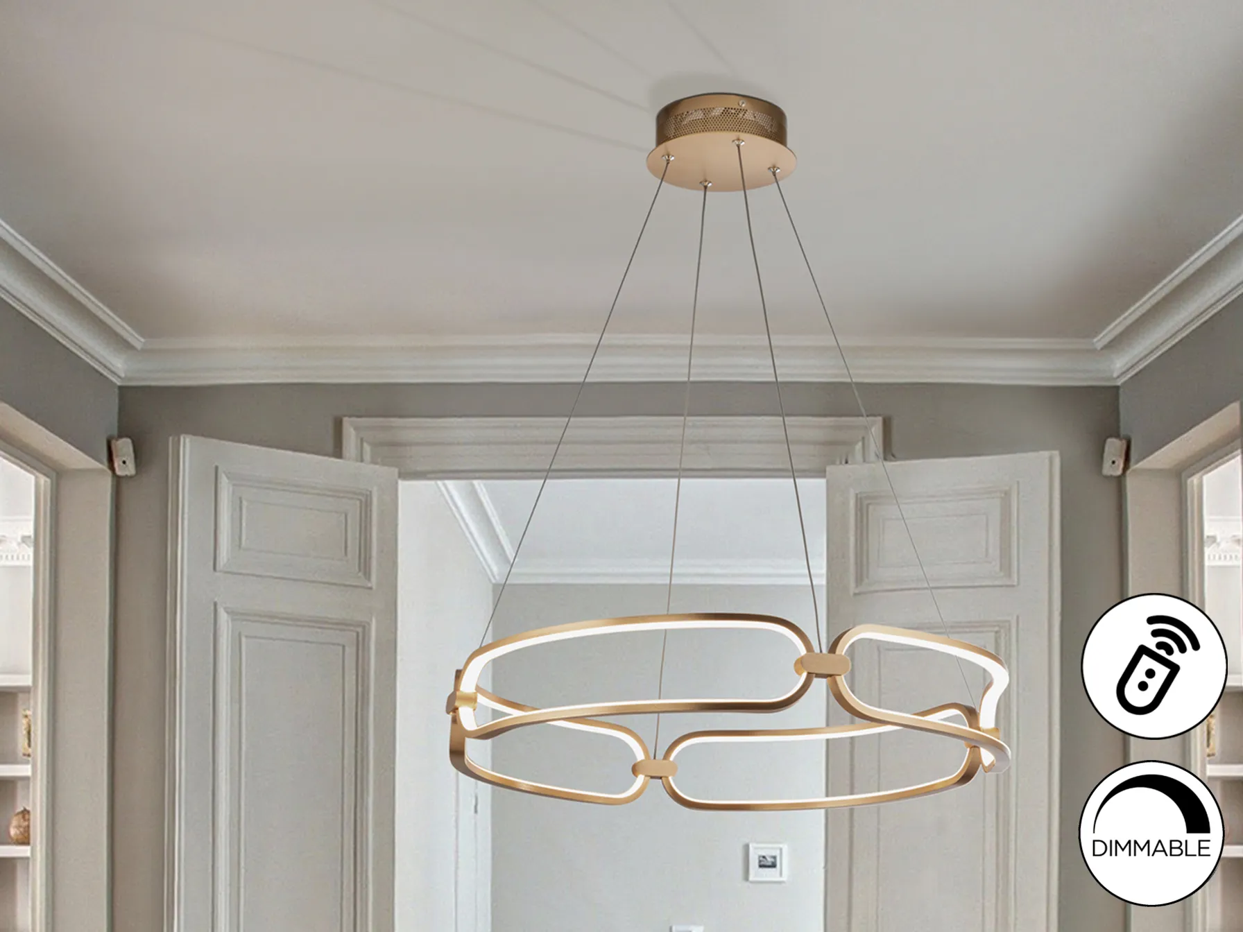 Лампата е с регулируема дължина и опалови силиконови дифузори, което я прави подходяща за различни пространства. Дистанционното управление позволява лесно настройване на осветлението според вашите нужди.