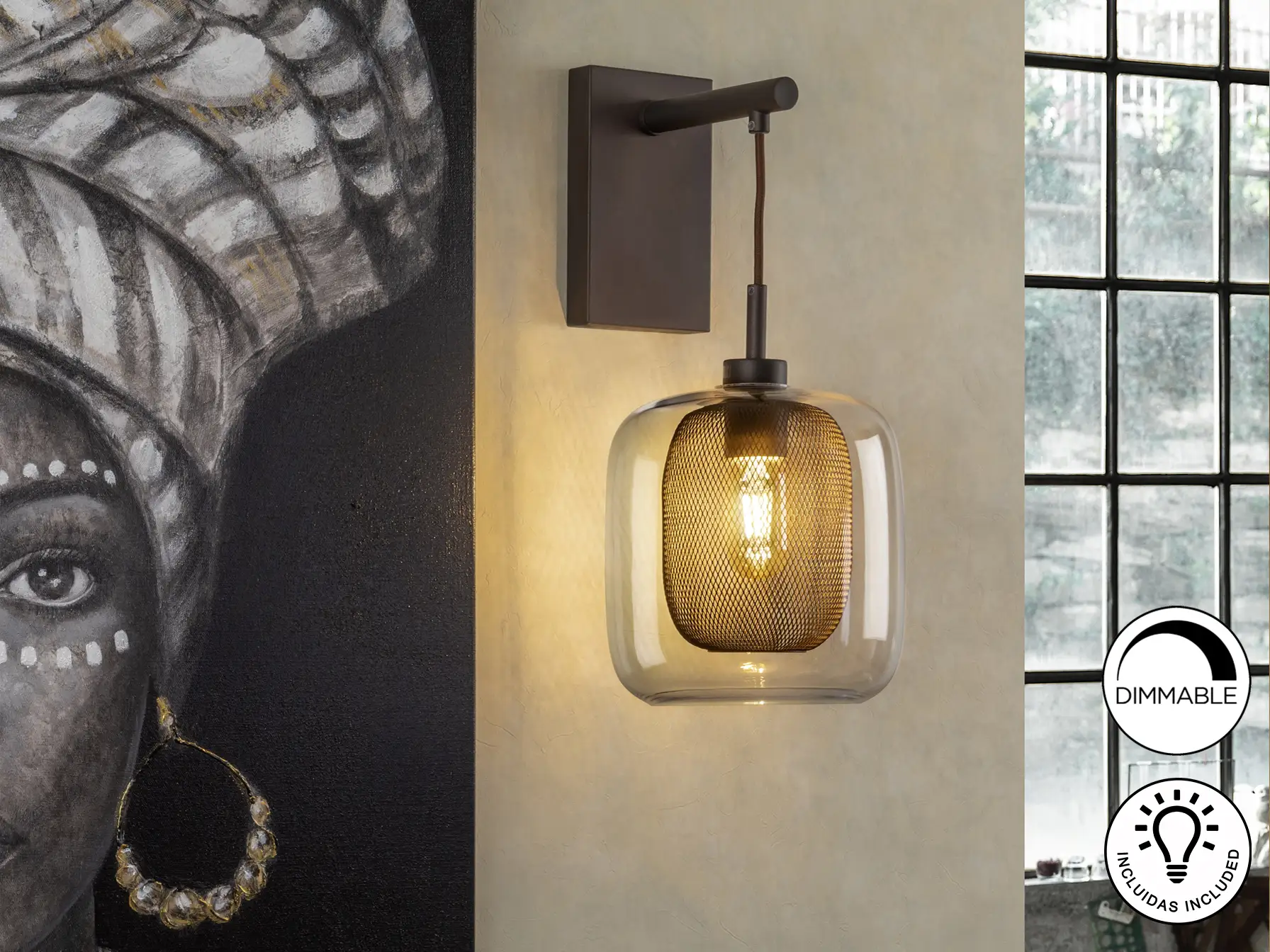 – **Абажур:** Двойно – метална мрежа и стъкло