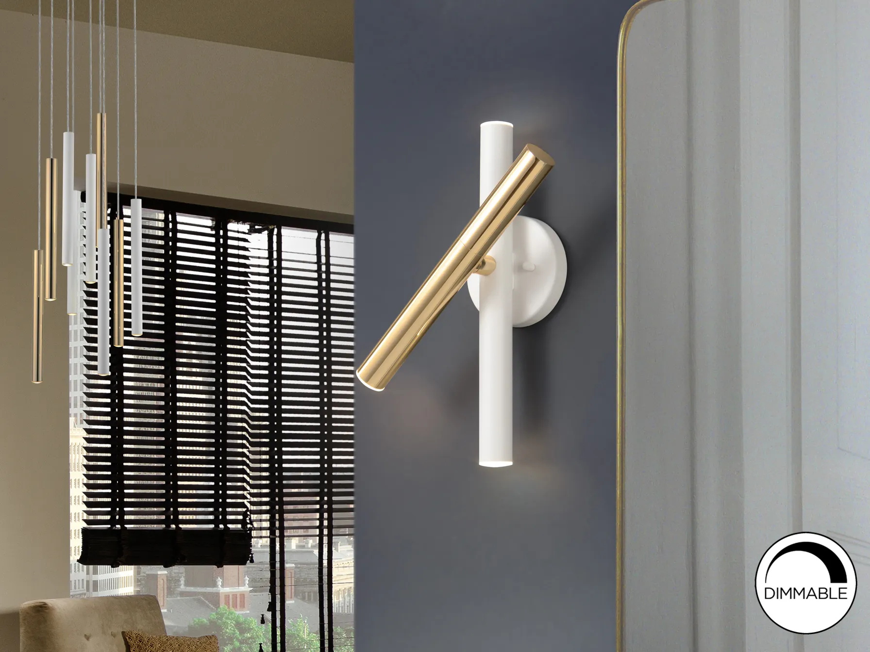 ОСВЕТИТЕЛНО ТЯЛО ЗА СТЕНА с 3 LED лампи и въртящи се рамена. Изработено от метал, с покритие в златно и матово бяло.