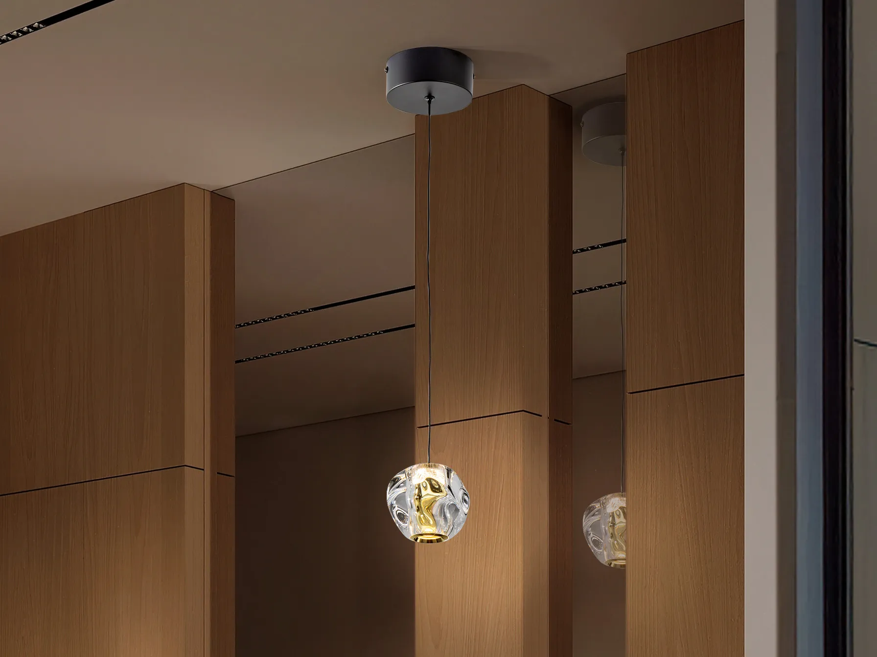 Лампата е не само стилна, но и функционална, осигурявайки ярко и приятно осветление. С прозрачния си акрилен абажур, тя разпространява светлината равномерно, създавайки уютна атмосфера.