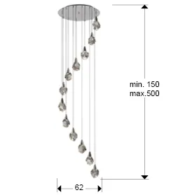 Лампата AQUARIA 12L с хромирано покритие и 12 LED осветителни тела е идеалното решение за стилно осветление. Със своята елегантна форма и декоративни стъклени абажури, тя добавя уникален характер на всяко пространство.