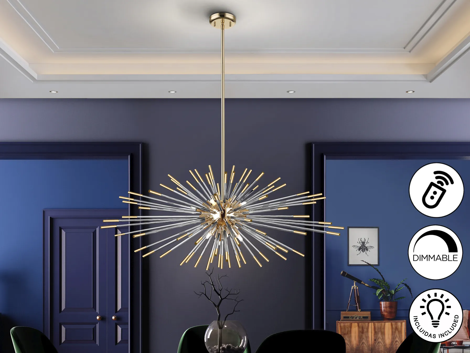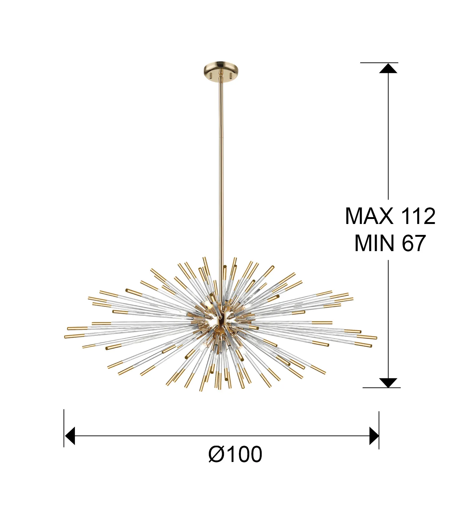 – Прозрачни стъклени радиални пръти с декорации в амбър