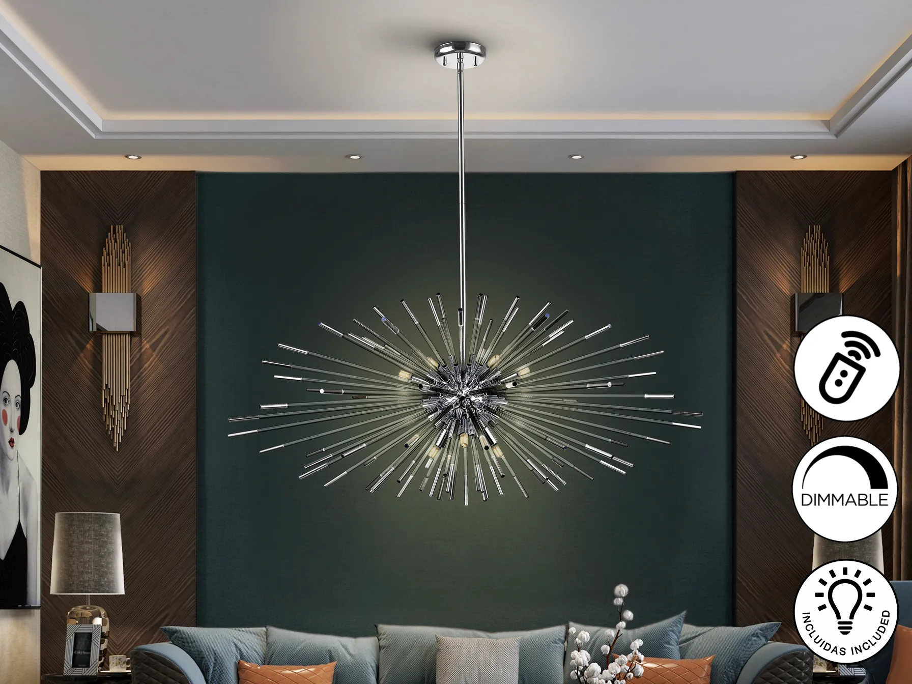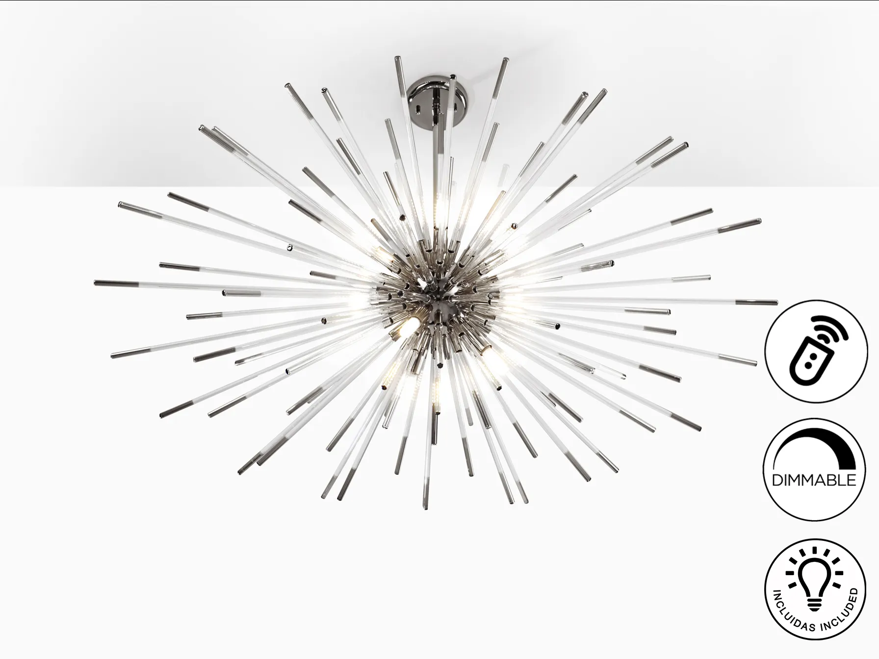 – Прозрачни стъклени радиални пръчки с тъмен хром