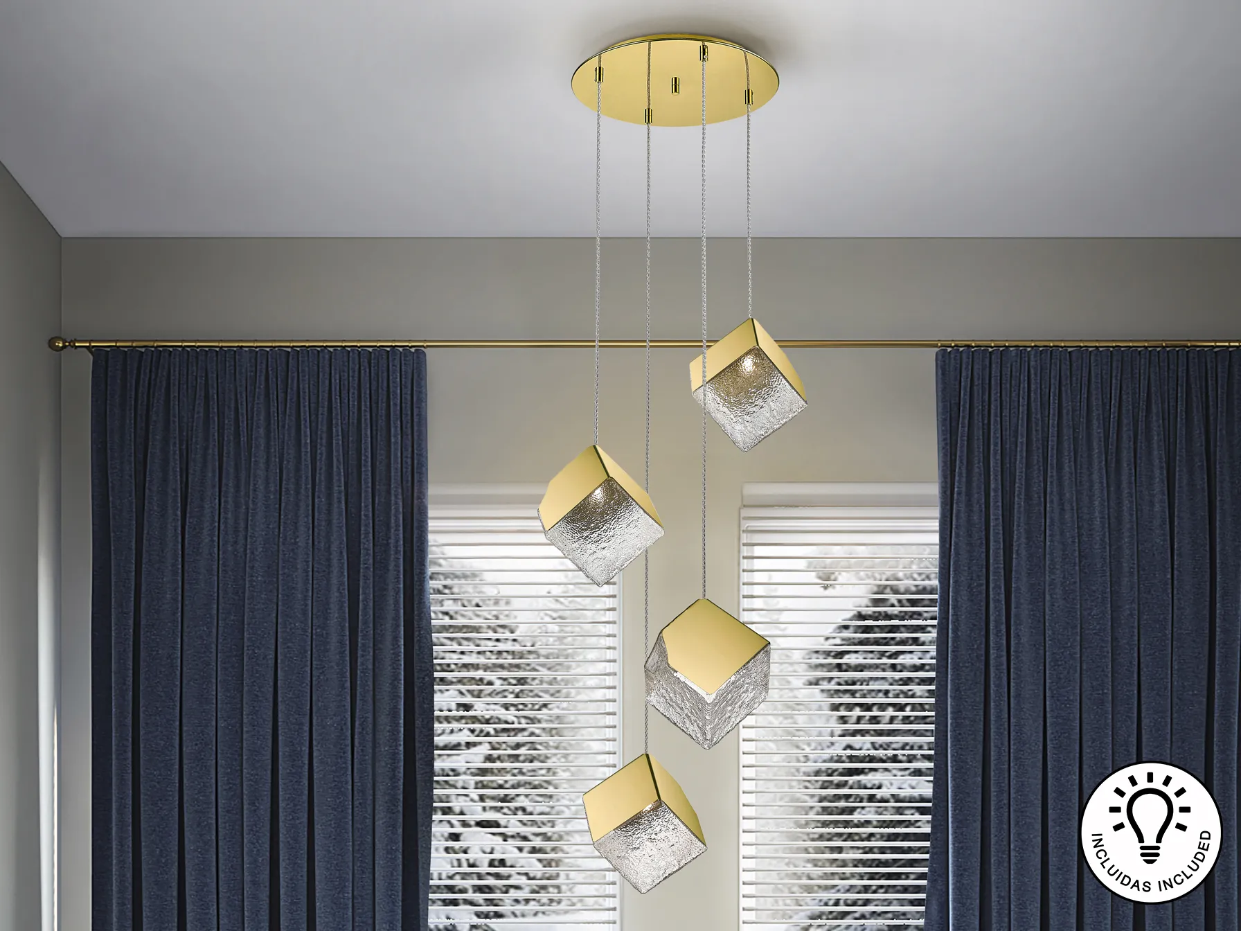 – **Тип абажур**: Кубичен от текстурирано стъкло