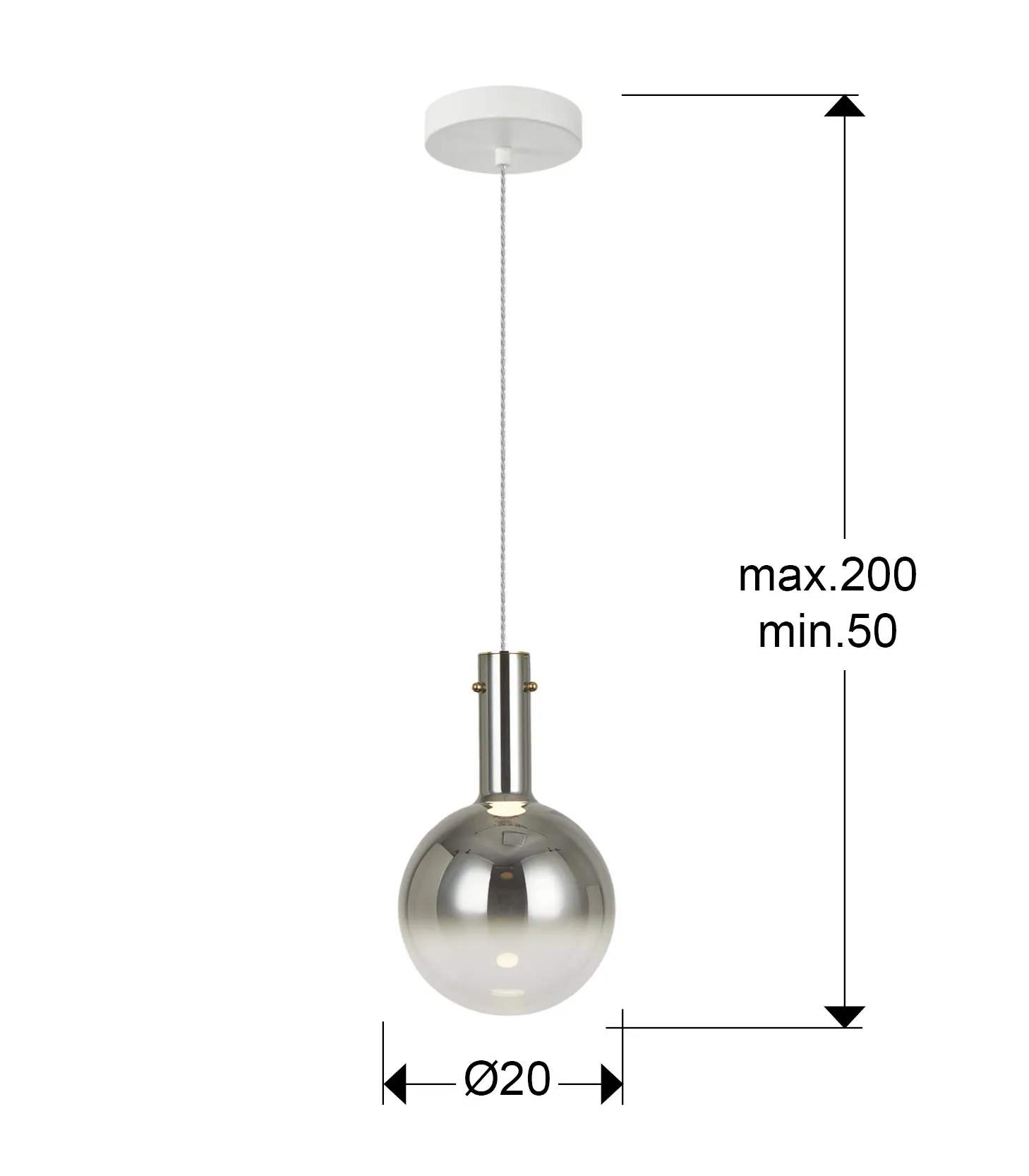 – Абажур от стъкло с диаметър 20 см в димно сиво