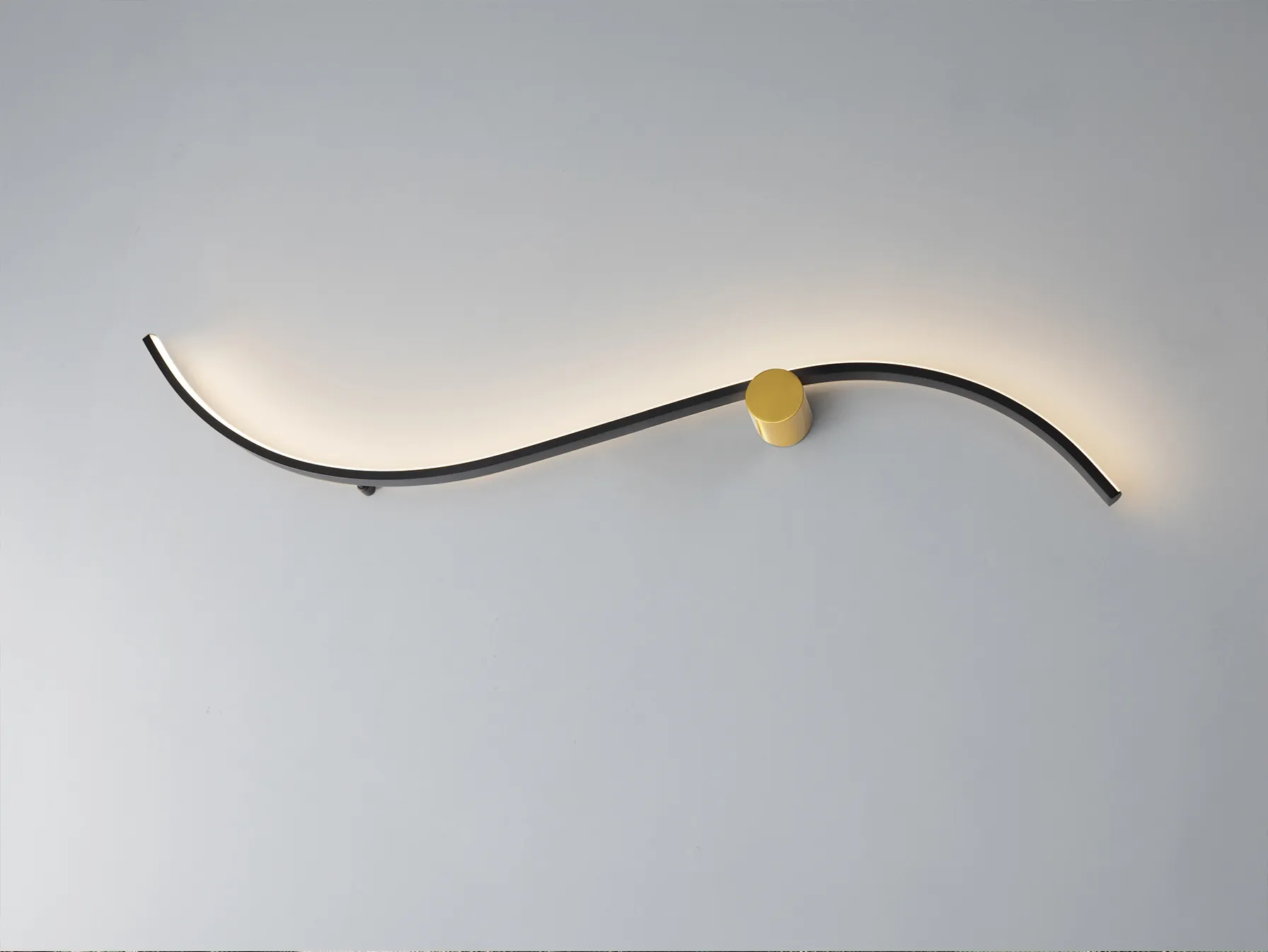 Стенна лампа, изработена от метал и алуминий с матово черно и златно покритие. Осветителното тяло разполага с опалова силиконова дифузер и LED осветление с мощност 13W.