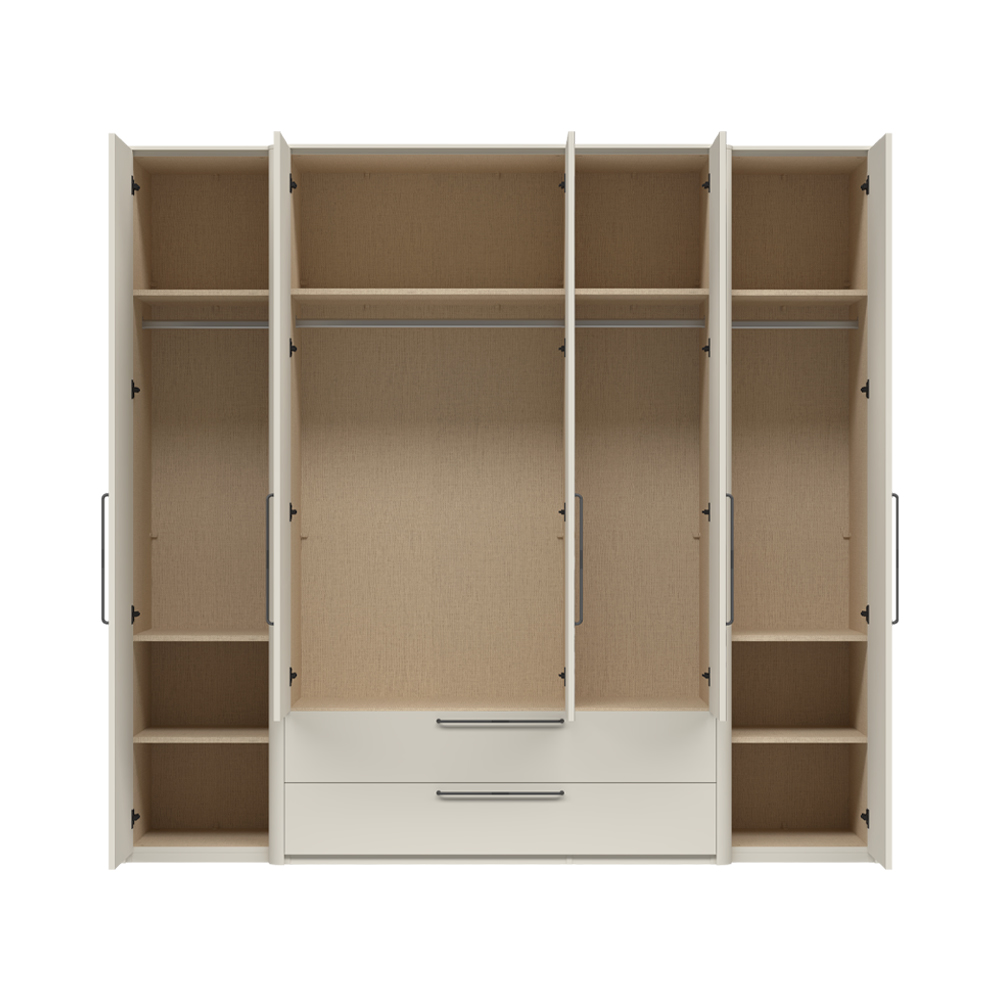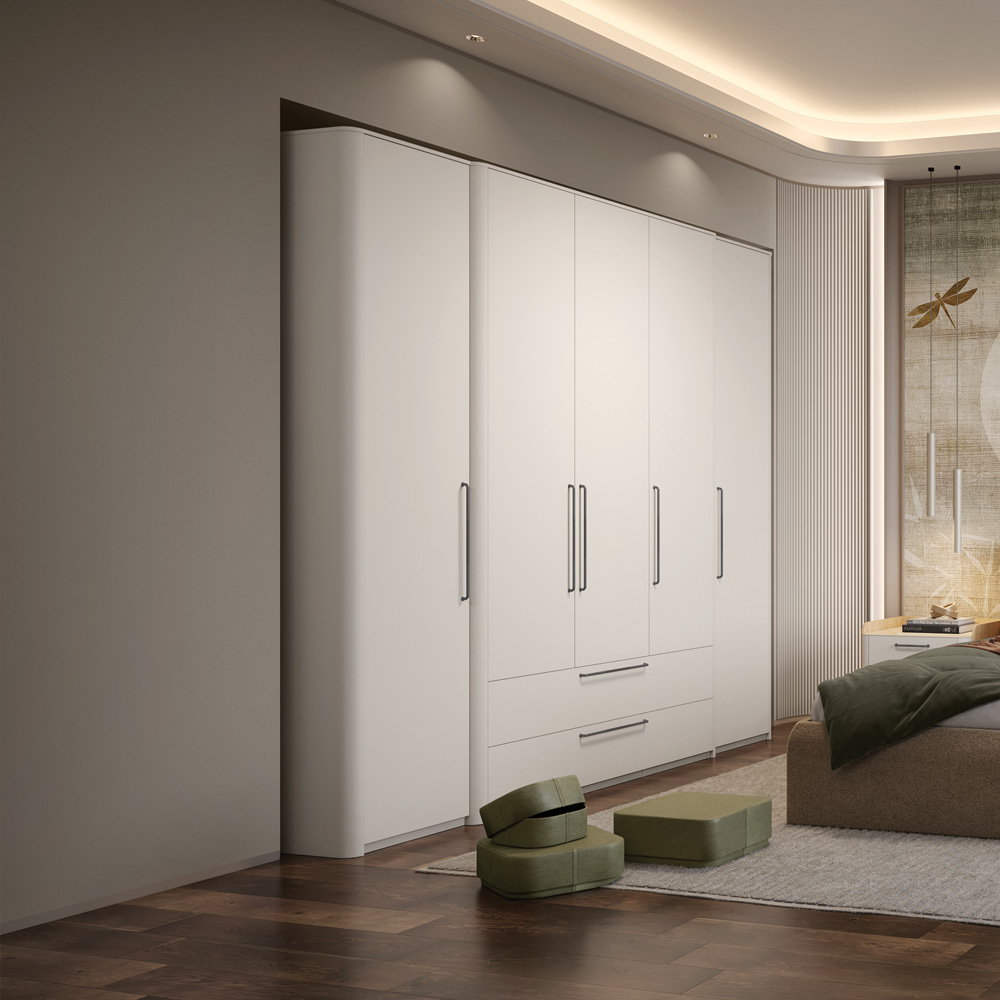 Гардероб за спалня от колекция AIR с 5 врати и две чекмеджета, с хармонична и мека форма.