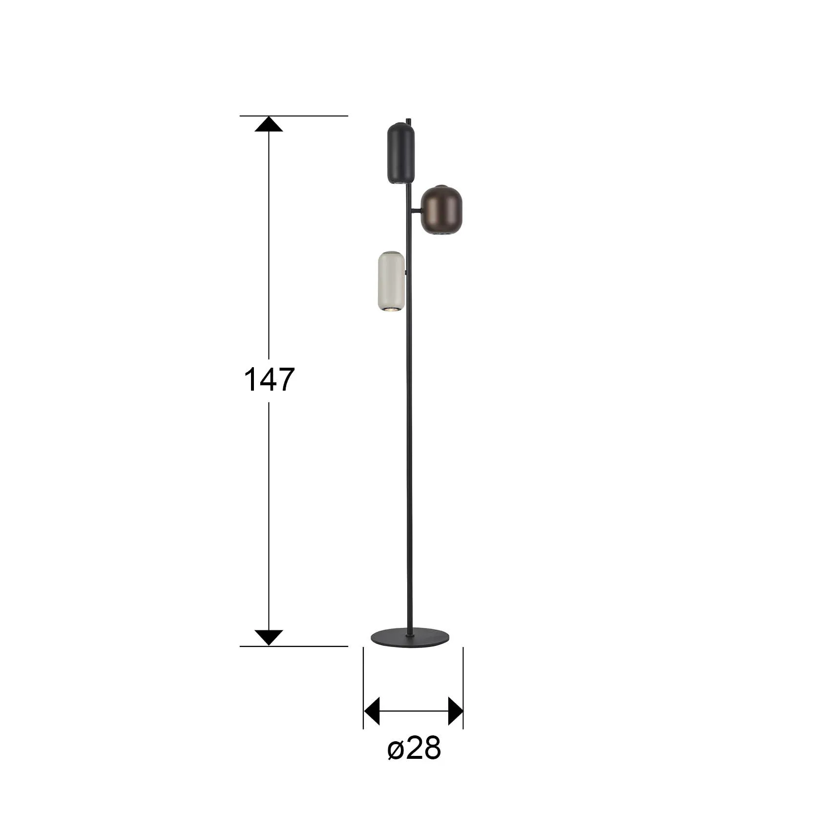 Floor lamp made of metal finished in matt black. 3 metal shades in matt black, dark brown and light grey. GU10 lampholders.