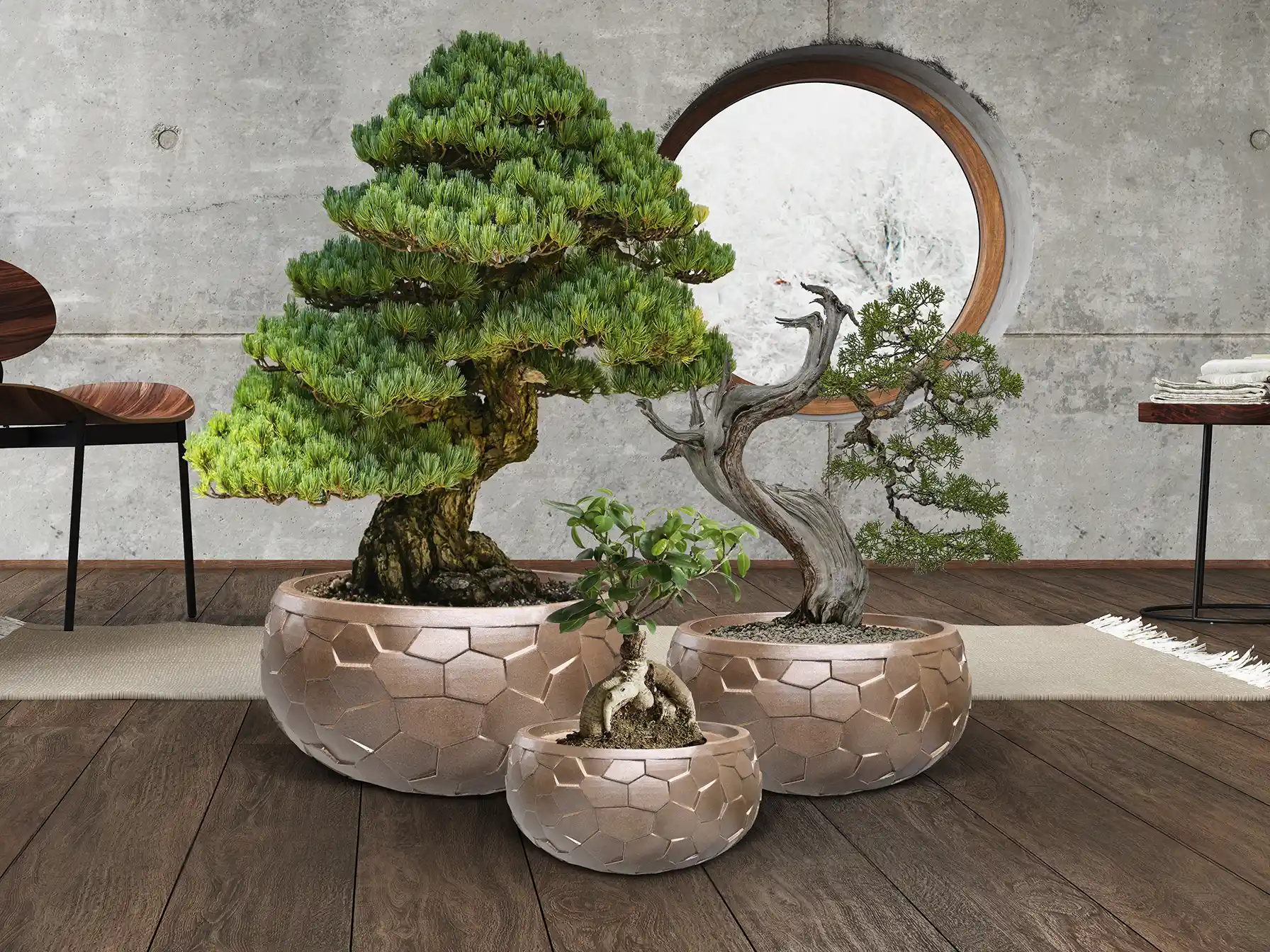 Комплектът CANELA включва три саксии с елегантен бронзов завършек, които са идеални за декорация на вашия дом.