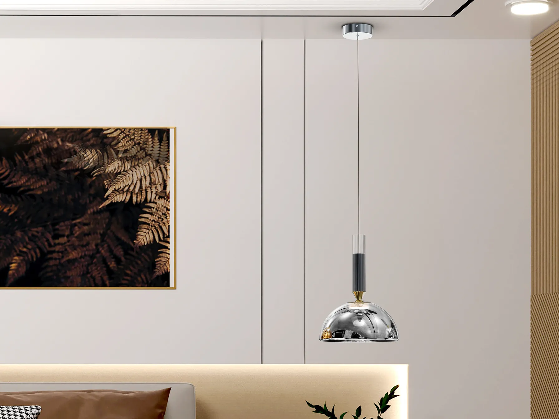 – **Абажур:** Стъклен с електролизно покритие в сребрист тон