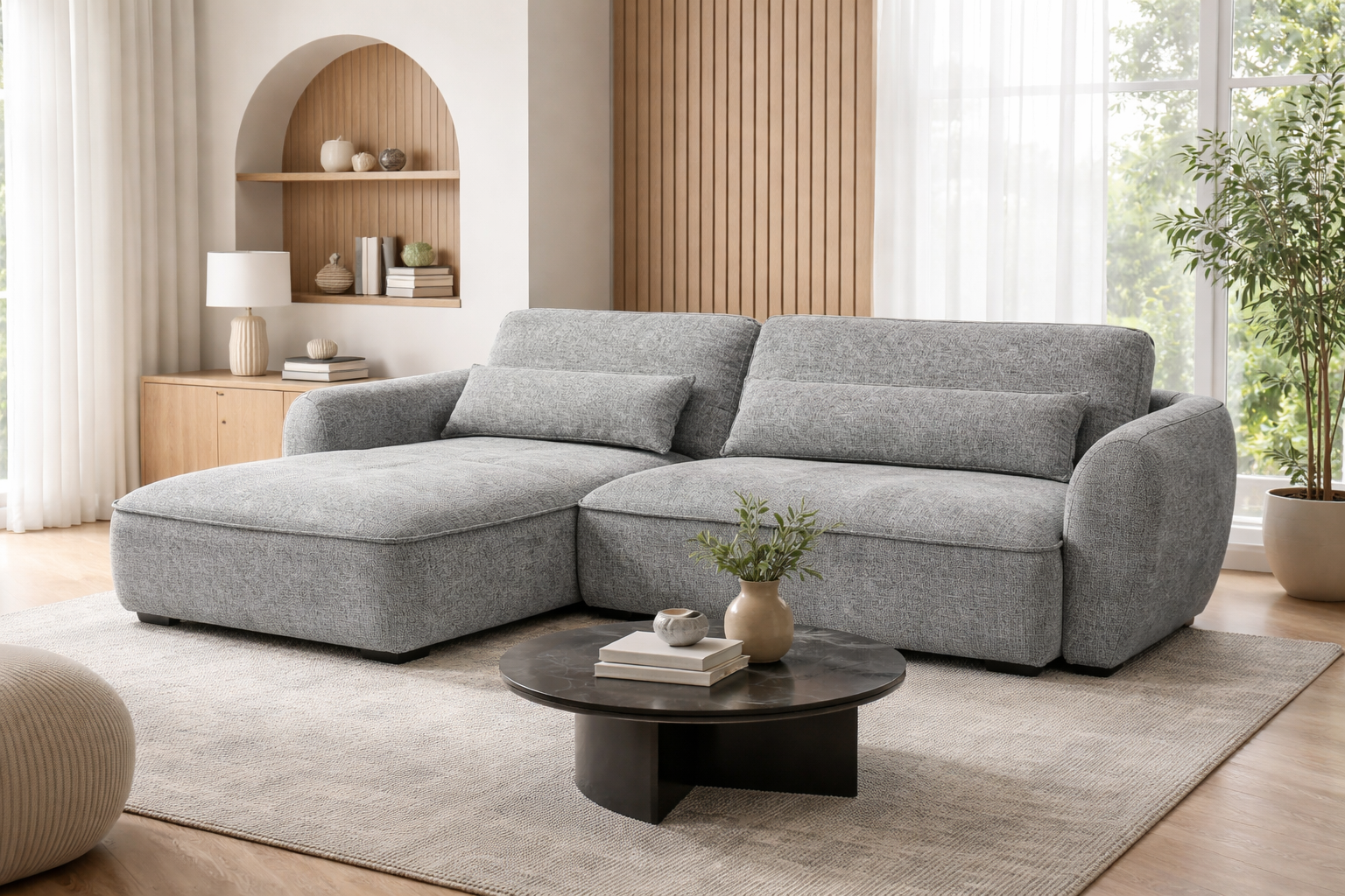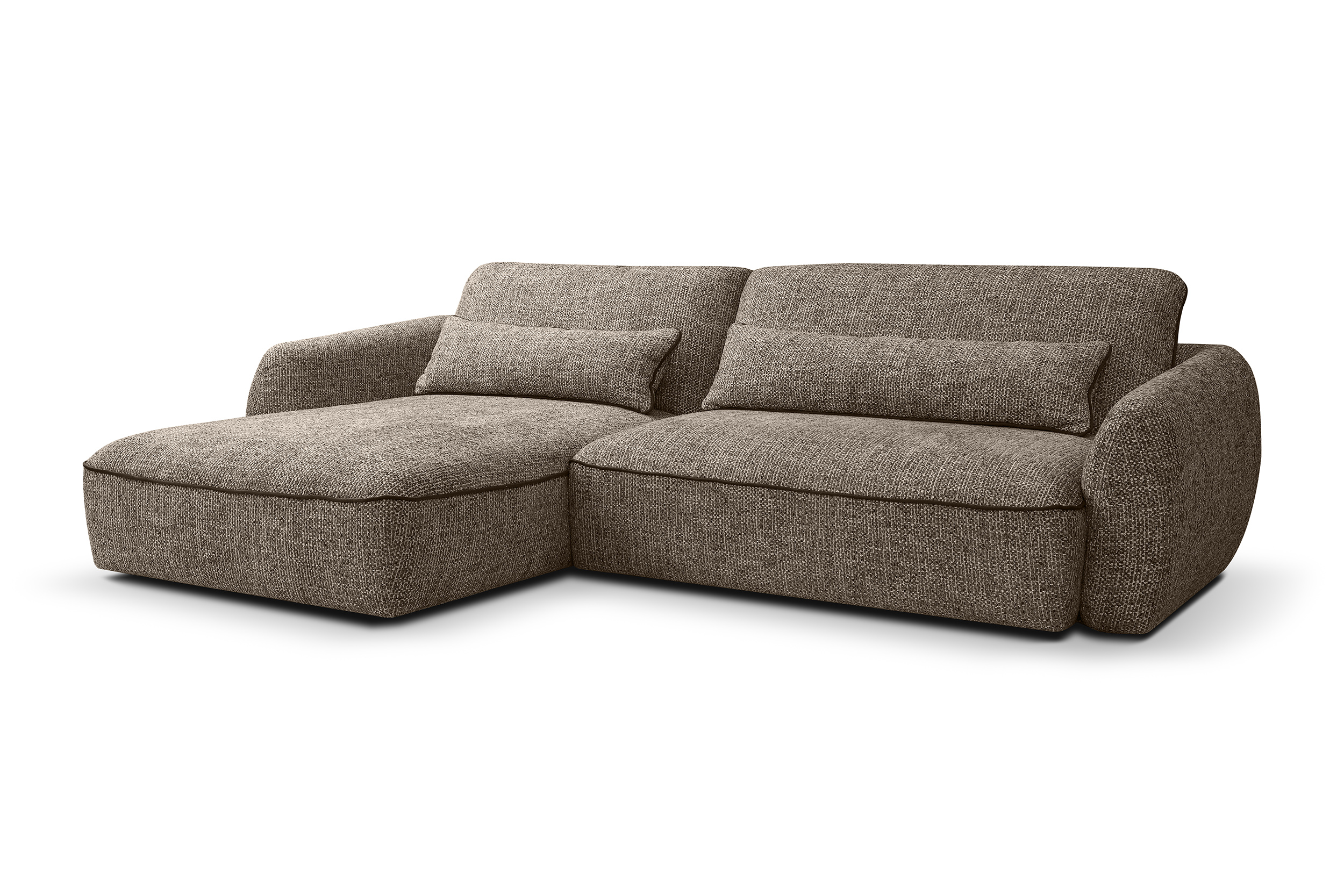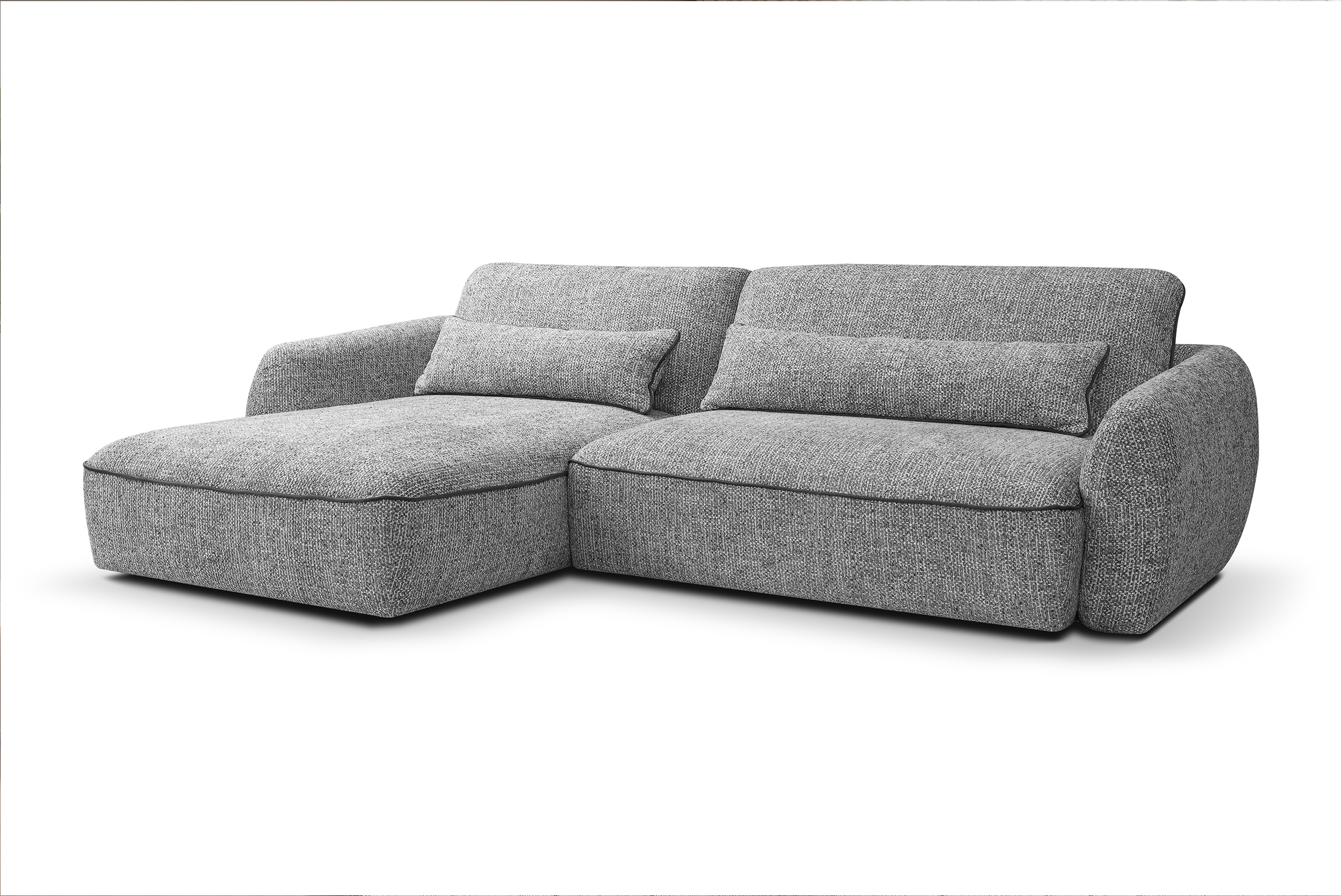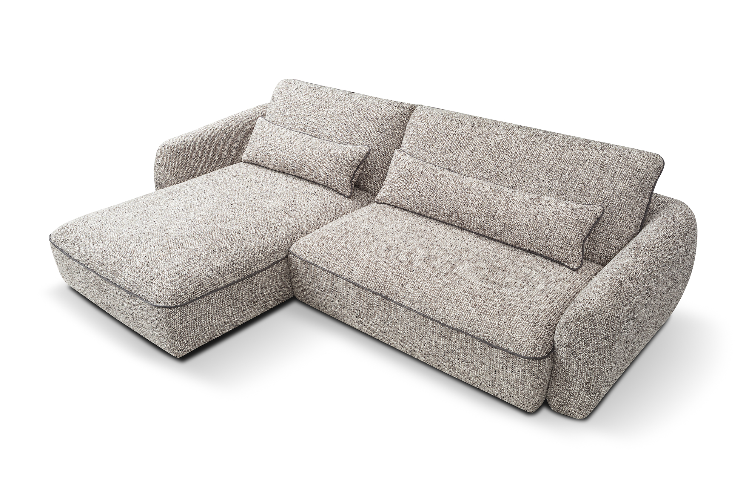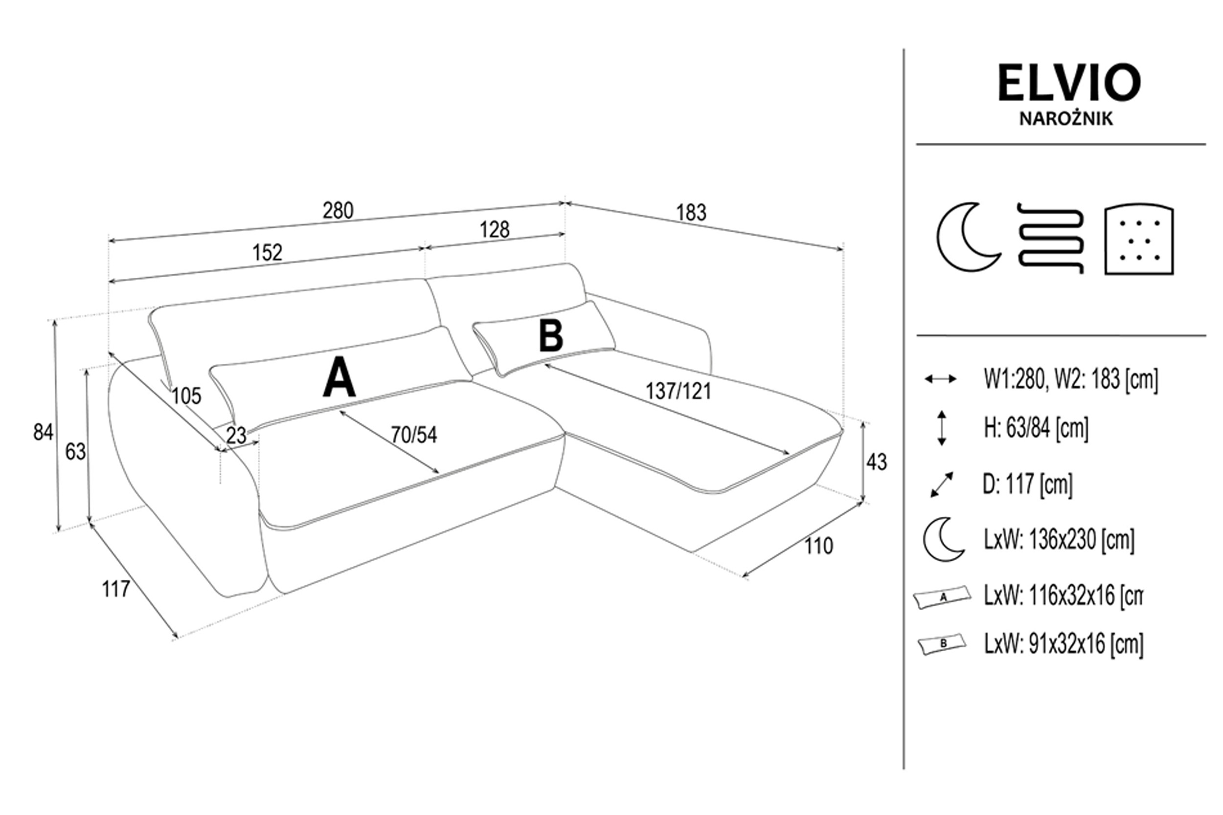 Ъгловият диван ELVIO съчетава модерен дизайн, компактни размери и високо ниво на комфорт. Благодарение на механизма PUMA, той лесно се трансформира в удобно легло за ежедневна употреба. Седалката със зиг-заг пружини и плътна пяна осигурява стабилна опора, а меките облегални възглавници допринасят за приятна релаксация. Моделът е практичен избор за всекидневни, в които се търси функционалност без излишен обем.