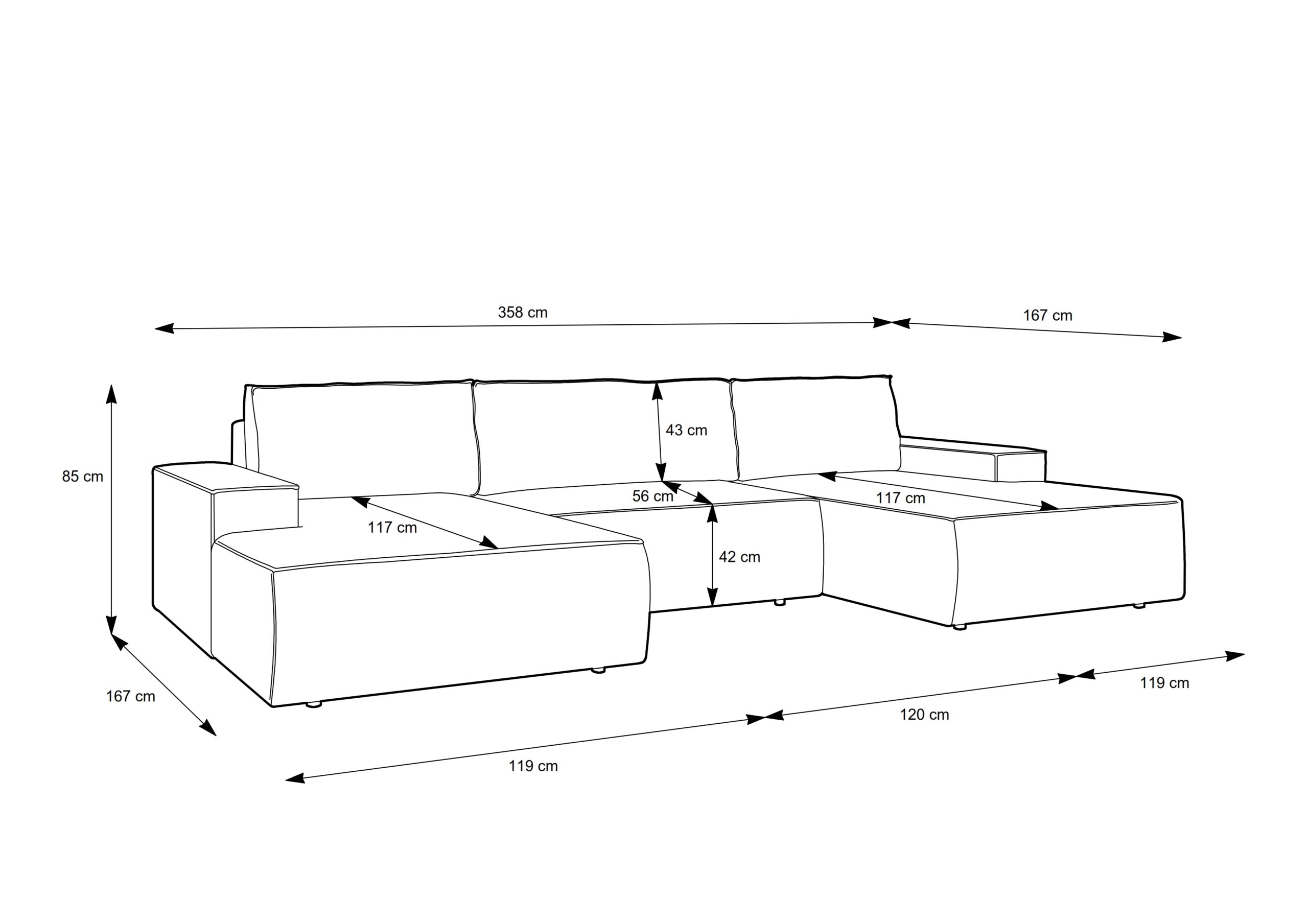 Елегантен и модерен диван, създаден за комфорт и стил в ежедневието. Чистите линии и обемната мека форма го правят идеален акцент за всеки интериор – от минималистичен до класически. Широките модули осигуряват простор за семейни моменти, почивка или срещи с гости, а висококачествената тапицерия допринася за усещане за уют и лукс. Перфектният избор за дом, в който комфортът е на първо място.