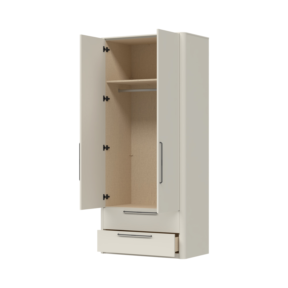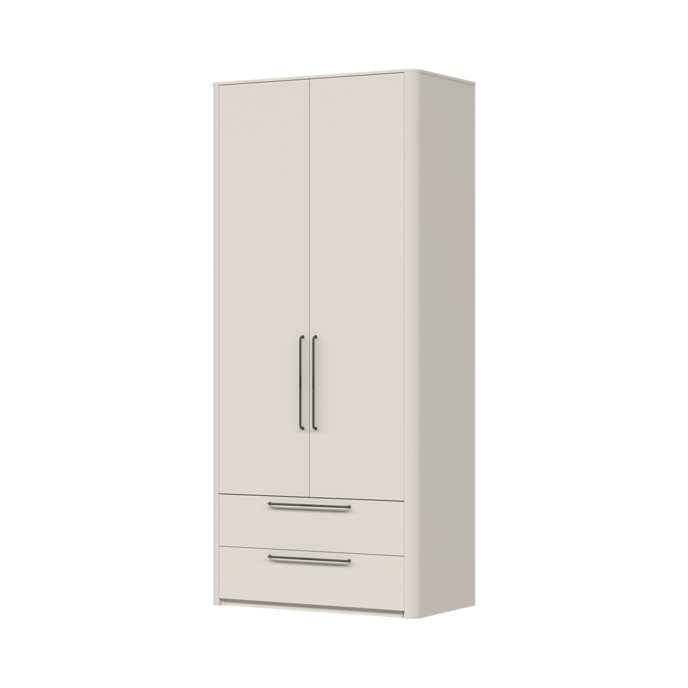 Гардероб за спалня от колекция AIR с две врати и две чекмеджета, с хармонична и мека форма.