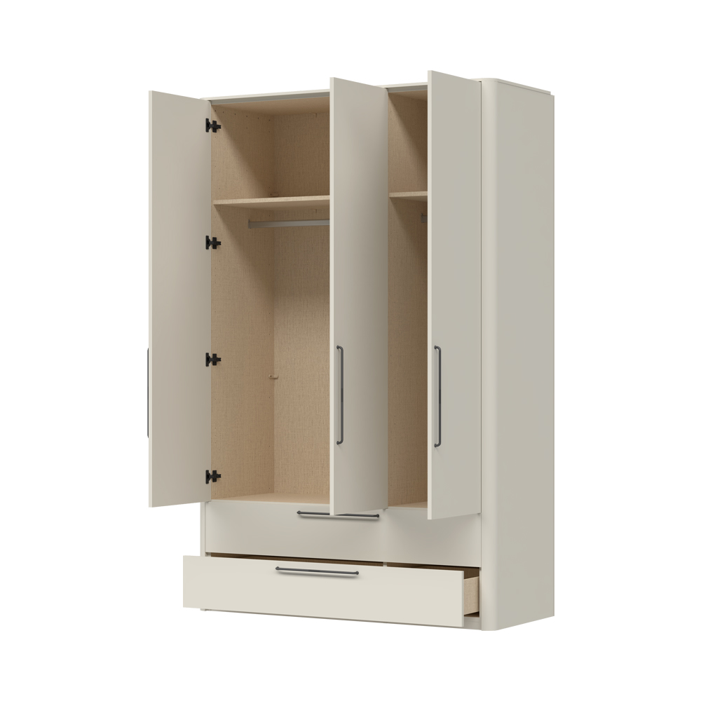 Гардероб за спалня от колекция AIR с 3 врати и две чекмеджета, с хармонична и мека форма.
