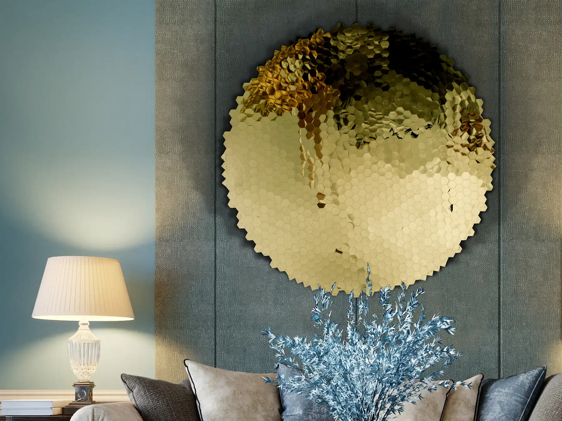 Лампа MATRIX с позлатен релеф е уникално осветително тяло, което добавя стил и елегантност на всяко пространство.