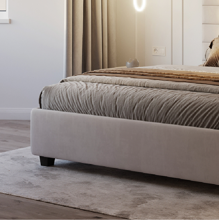 Леглото е в комплект с подматрачна рамка, повдигащ механизъм и разполага с ракла за съхранение на багаж