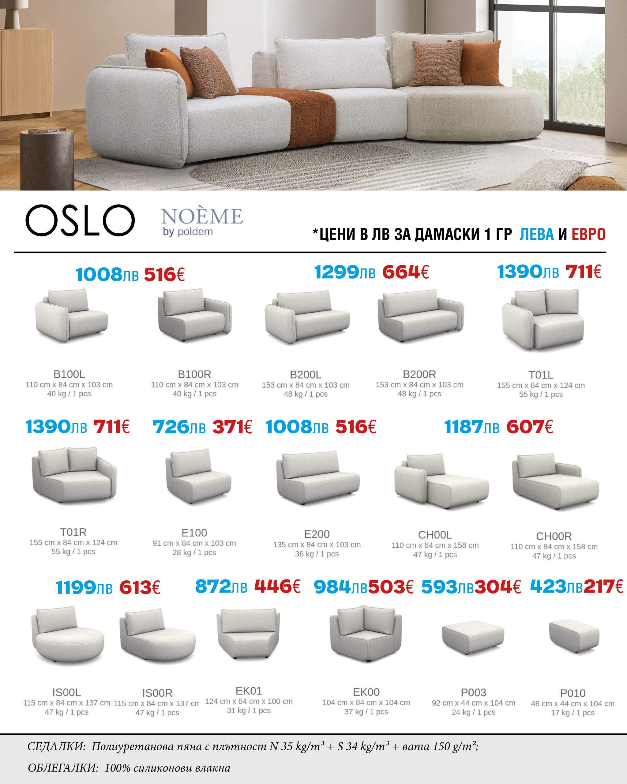 Открийте съвършенството на дизайна с модулен диван Oslo – стилно решение за модерен и уютен дом. Със своите заоблени форми, мека тапицерия и безкрайни възможности за персонализация, той се адаптира идеално към вашето пространство и начин на живот.