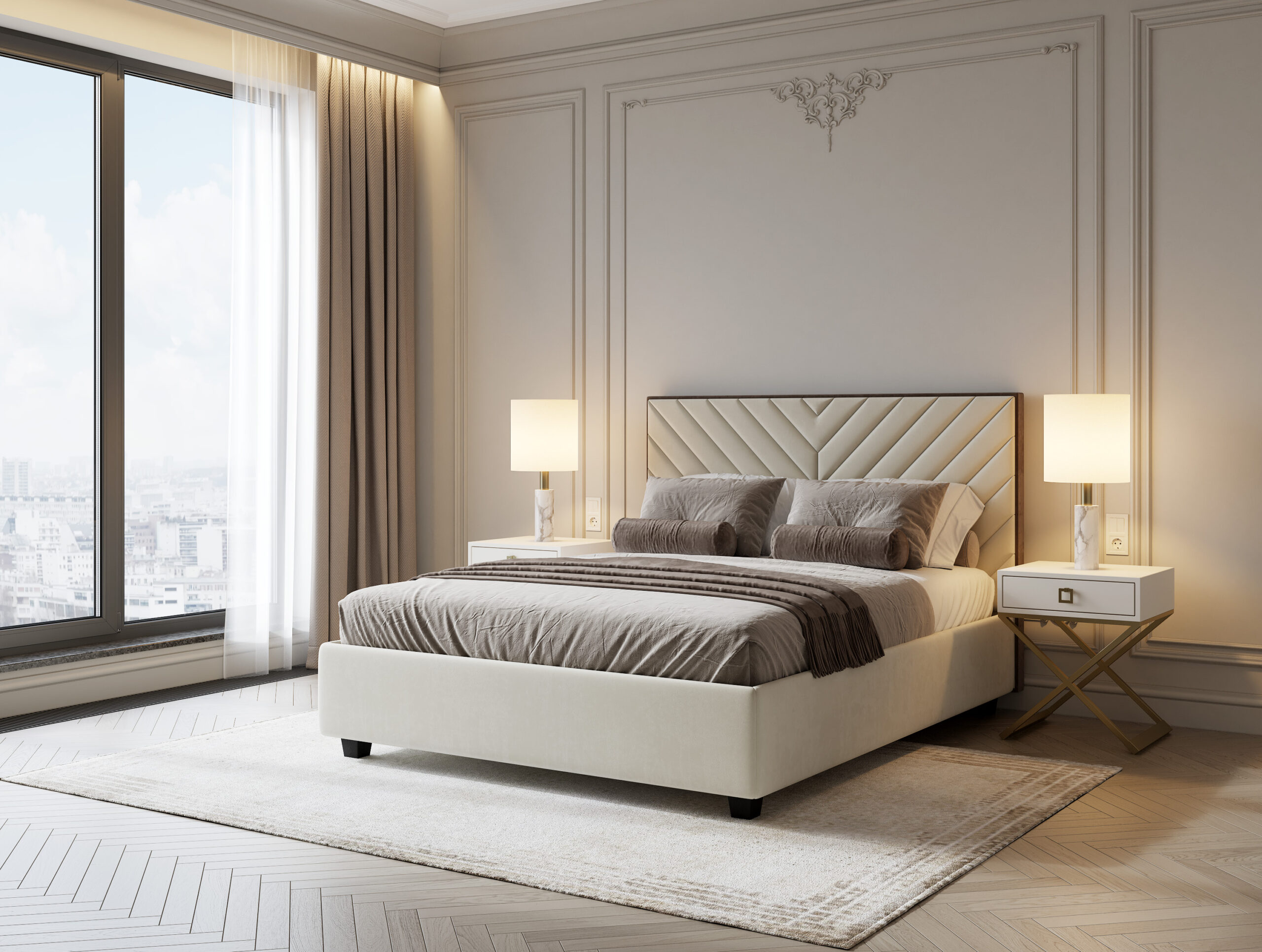 Тапицерията му е фина, мека на допир и визуално приятна, добавяйки лек слой естетически комфорт. Parma може да бъде персонализиран с широка гама от платове и цветове, така че да се впише хармонично в стила на твоето спално помещение – независимо дали предпочиташ спокойни нюанси или елегантен контраст.