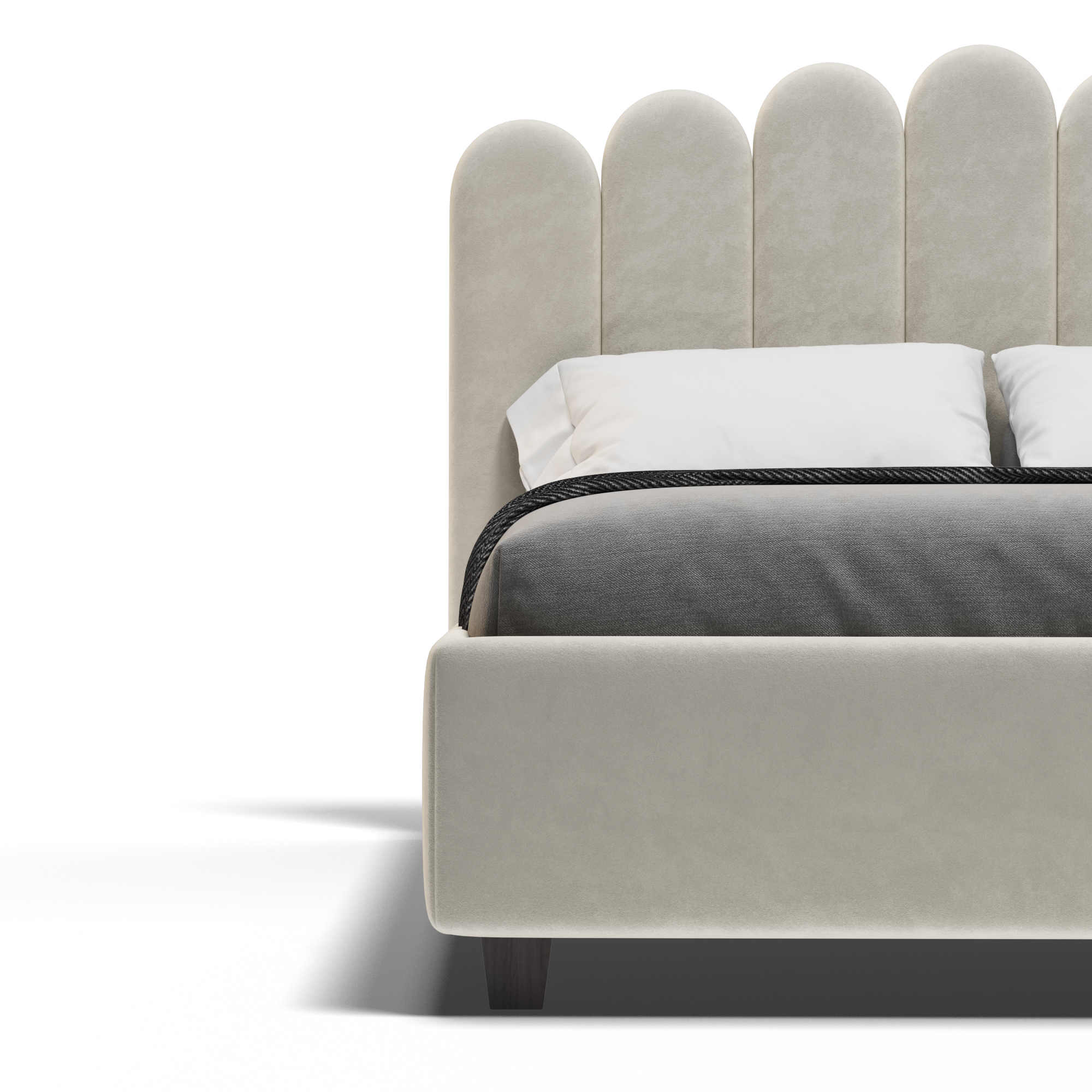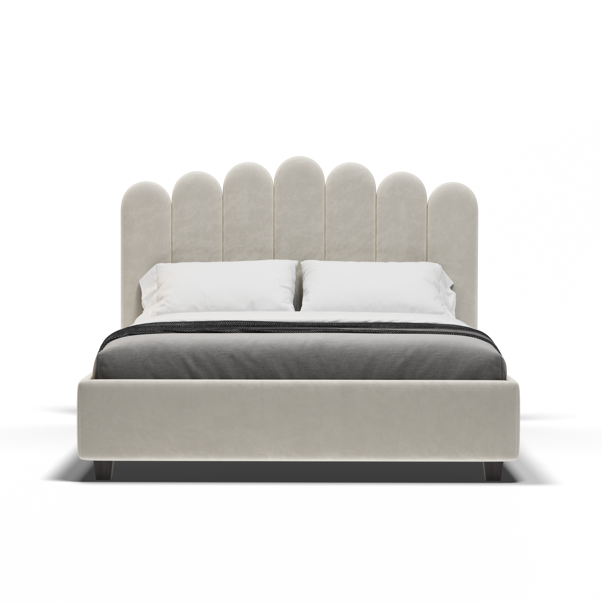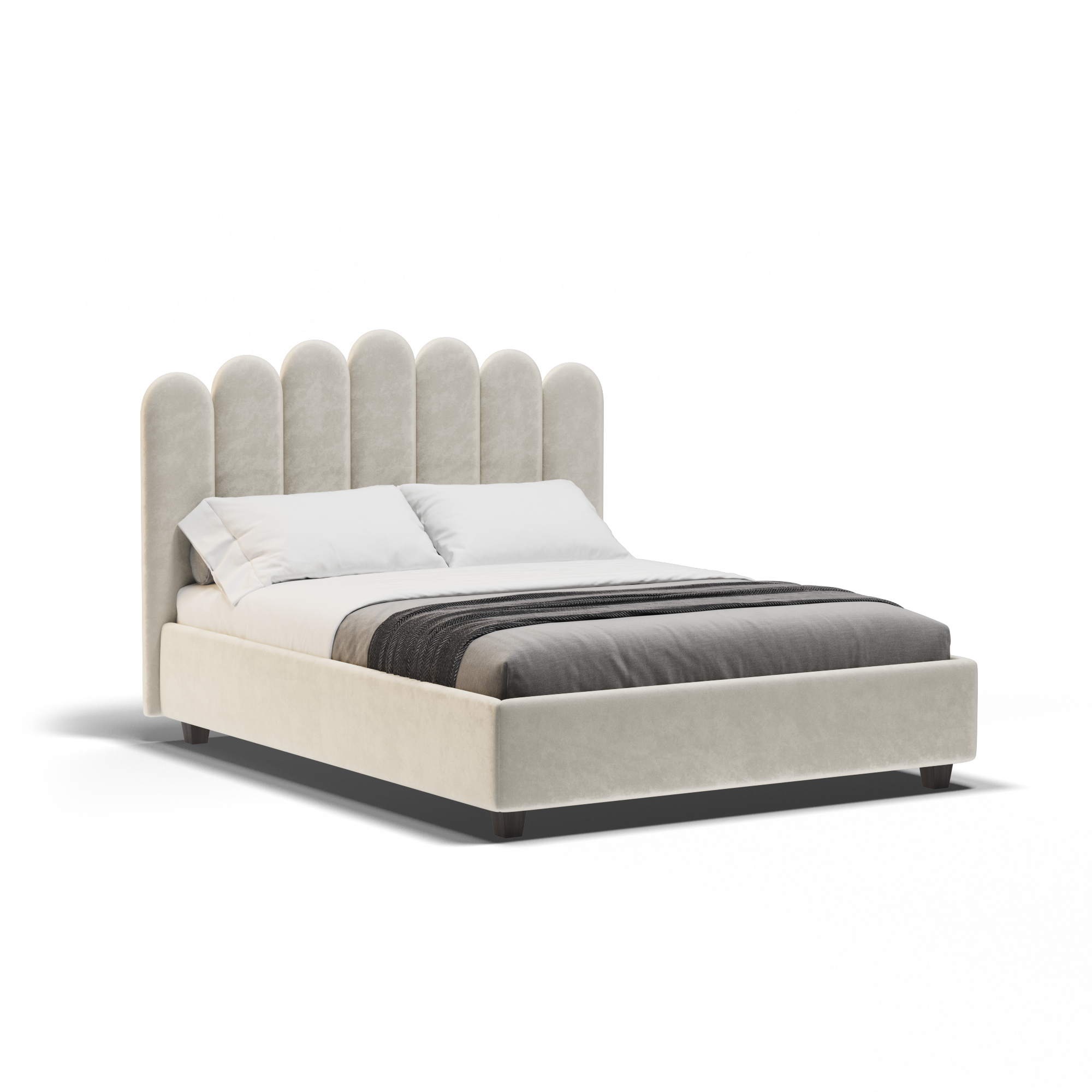 Таблата на леглото Perla е изградена от вертикални овални панели с добре премерени пропорции и заоблени ръбове, напомнящи естествени перли. Подредени симетрично, тези форми създават хармонична визуална игра, идеална за минималистични, скандинавски или интериори с нежни, женствени акценти. Ниската основа и изчистената обемност допринасят за присъствие, което е едновременно деликатно и елегантно.