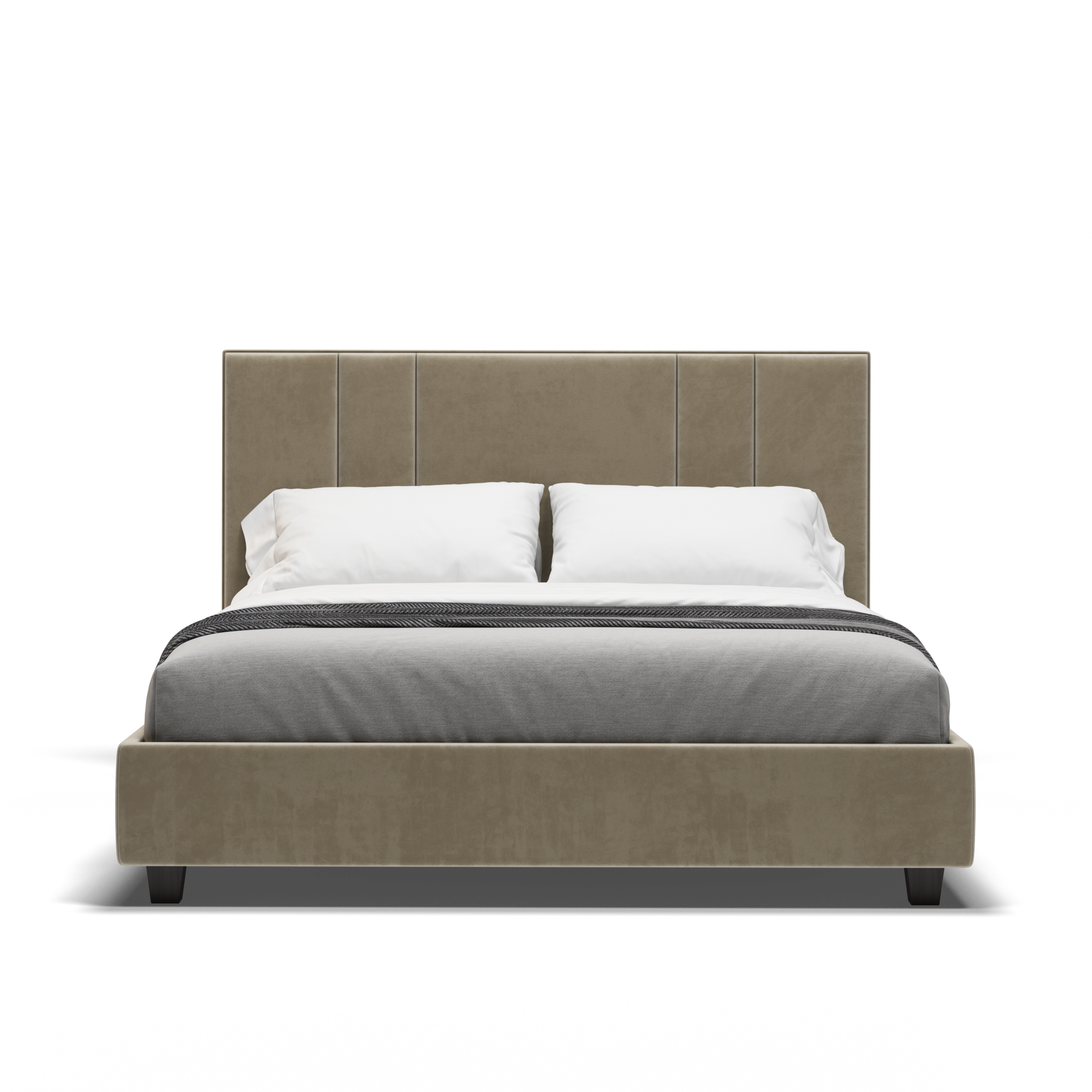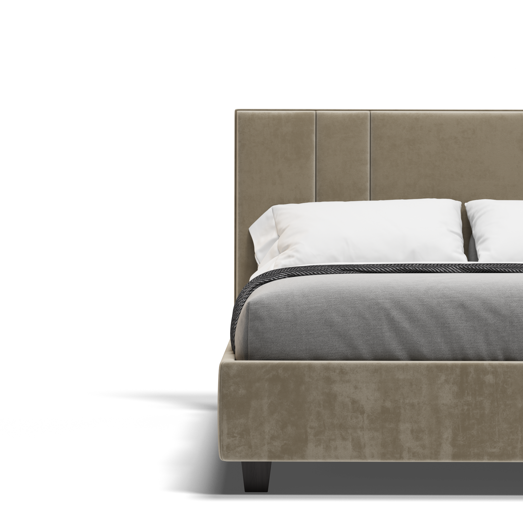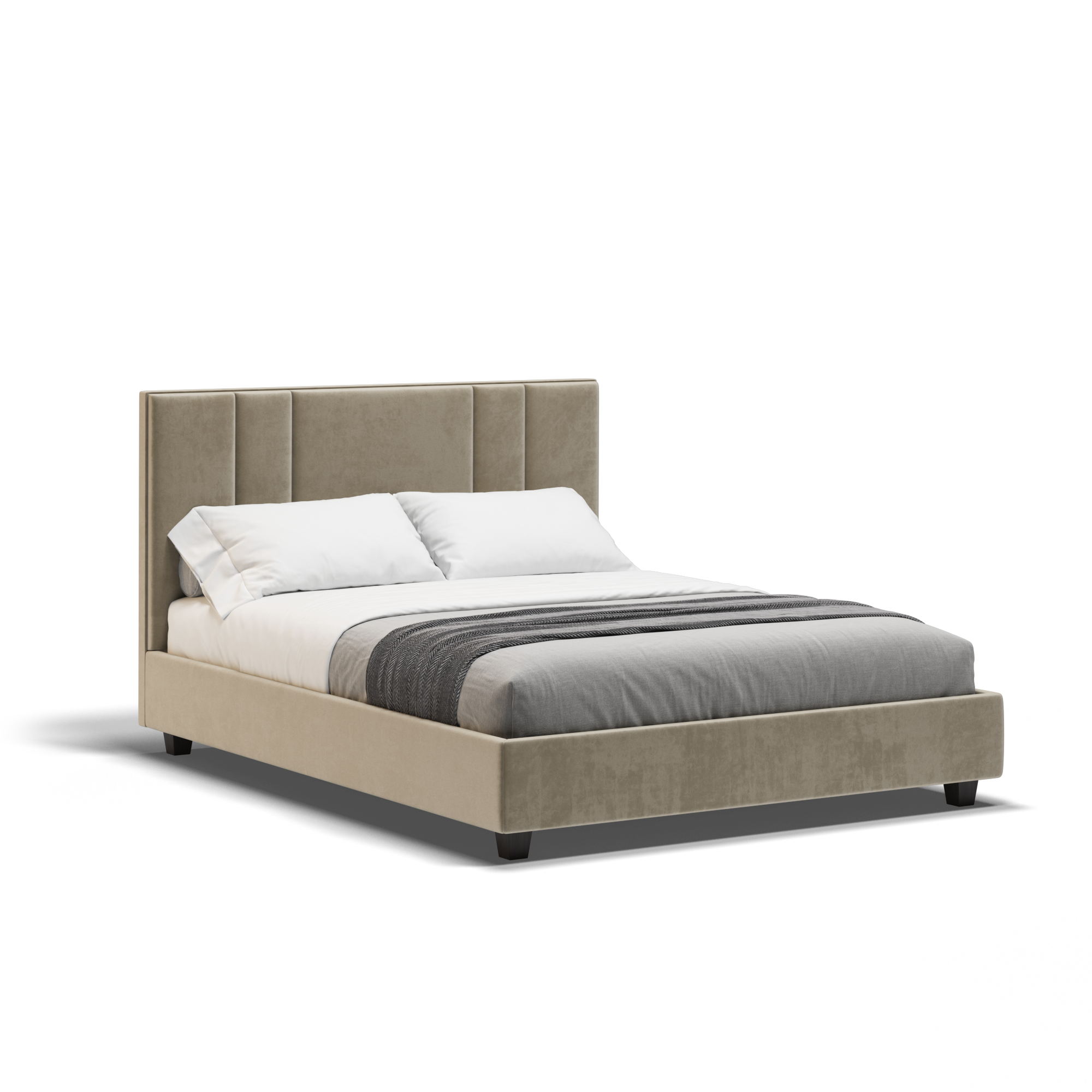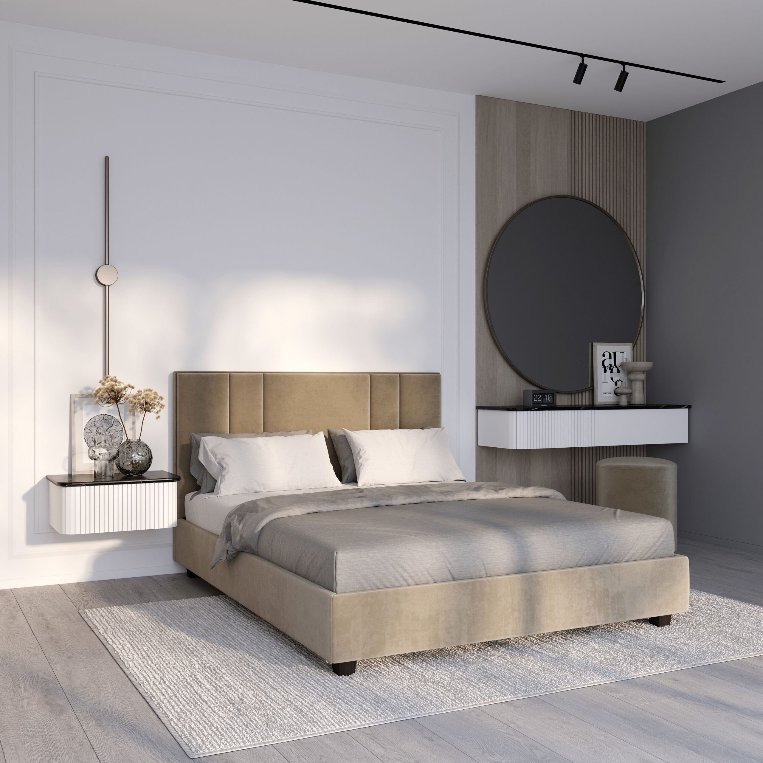Таблата на леглото Ritmo е съставена от ясно очертани вертикални панели, с изчистени линии и перфектно пропорционирани форми. Тази структура създава усещане за подреденост и визуален баланс, а средната ѝ височина я прави идеална за интериори, в които се търсят едновременно функционалност и стил. Общият дизайн е компактен, с леко заоблени ъгли и меки ръбове – подходящ за модерна и просторна спалня.