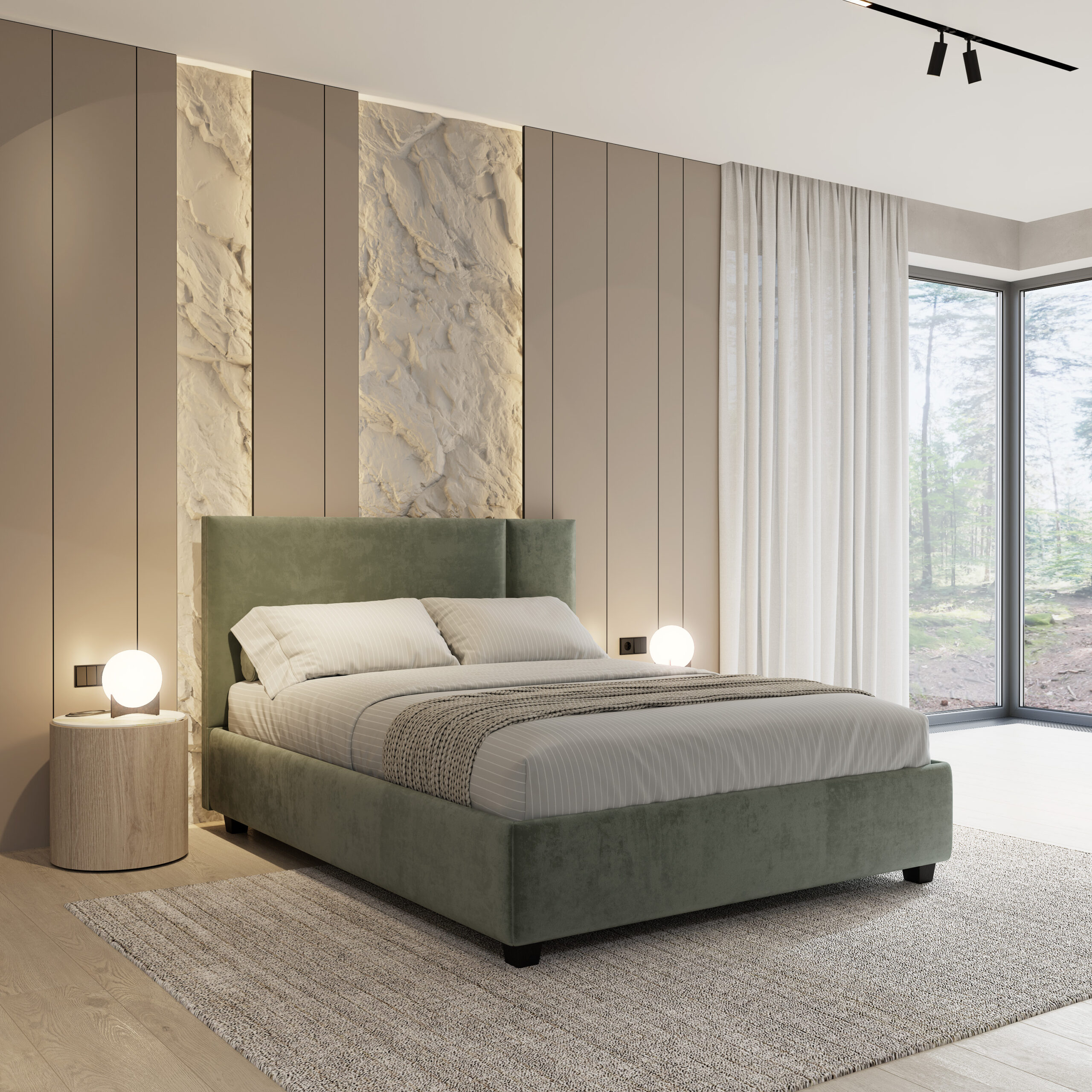 Леглото е в комплект с подматрачна рамка, повдигащ механизъм и разполага с ракла за съхранение на багаж