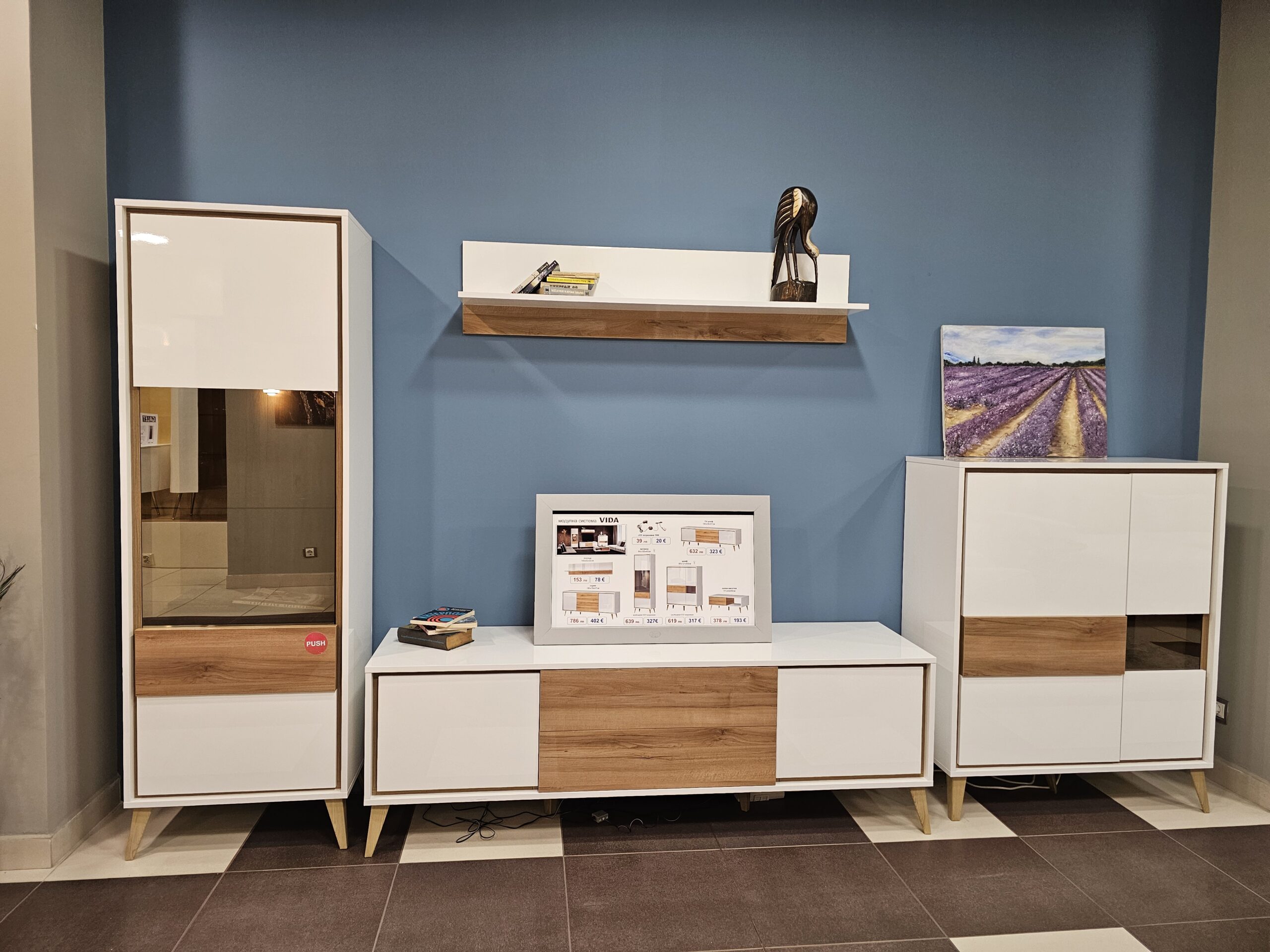 Kолекцията мебели VIDA e с визия плътна врата и стъкло тип стопсол. Този модел е предназначен за почитателите на ретро дизайна.